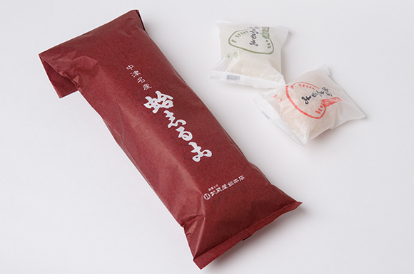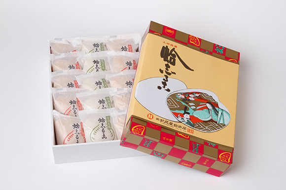 種ができたら、蛤の形をした型に流し入れて最中を焼きます。三十年前までは、職工さんたちが一列に並べた型を順番にひっくり返しながら最中を手焼きしていましたが、現在では機械を導入しています。焼きたての最中は割れやすいため、木箱で保管してしばらく休ませます。 最中のなかに入れる小豆と抹茶(白いんげん豆)二種類の乾燥餡は、色や風味をしっかり残すために独自の装置で四、五時間かけて乾燥させます。この装置は初代が考案したもので、餡を焦がすことなく直火で水分をとばすことができるのが特徴です。直火でじっくり乾燥させることで、餡に独特の香ばしさが生まれます。 最後に、紅白の千鳥の餅を焼いて乾燥餡といっしょに最中に詰め、仕上げます。本物の蛤と同様、最中の形が対になっていますので、一つひとつ手作業で詰めていきます。この「蛤志るこ」は、お湯をかけると、中から二羽の千鳥が飛び立つように浮かびあがります。お召し上がりの前に、どうぞお楽しみください。